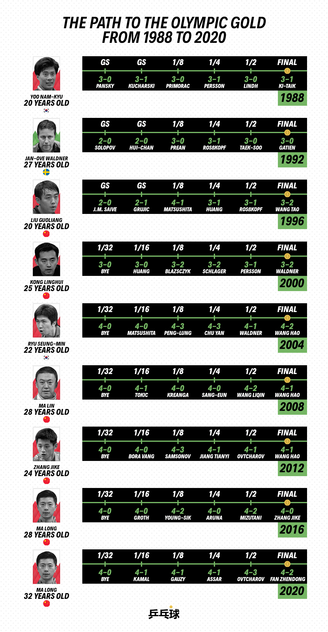 As you can see in the infographic, Chinese players rarely have given away the gold medal to athletes from other countries. The 2024 Olympics will most likely follow this trend. When it comes to the most important tournaments, Chinese leading stars rarely disappoint.